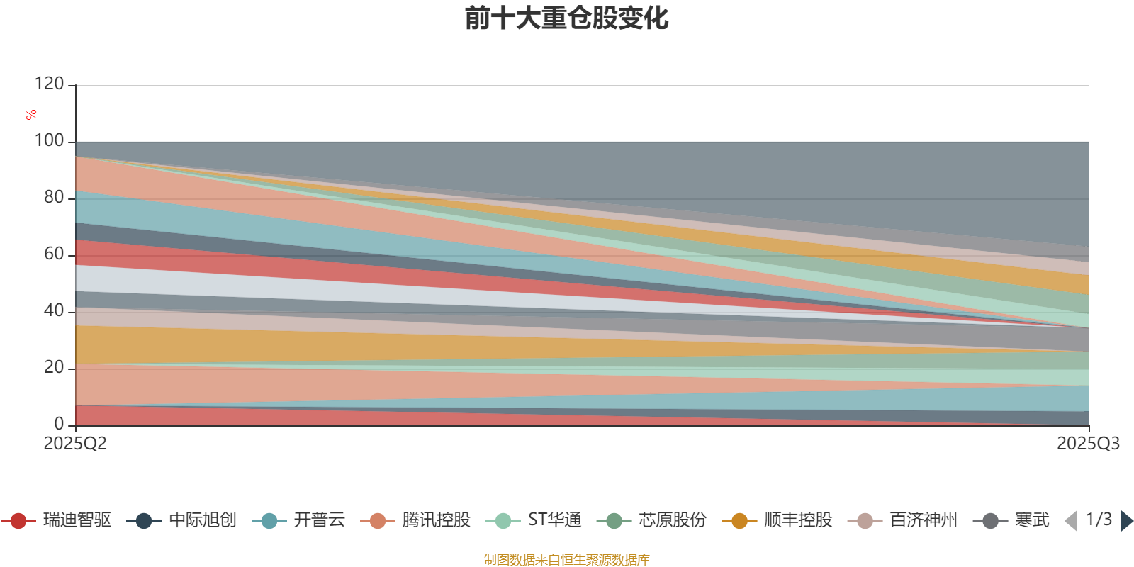 该基金持股集中度较高。截至2025年三季度末,基金十大重仓股分别是开普云、寒武纪、阿里巴巴-W、合锻智能、芯原股份、ST华通、新易盛、中科曙光、中际旭创、长盈精密。