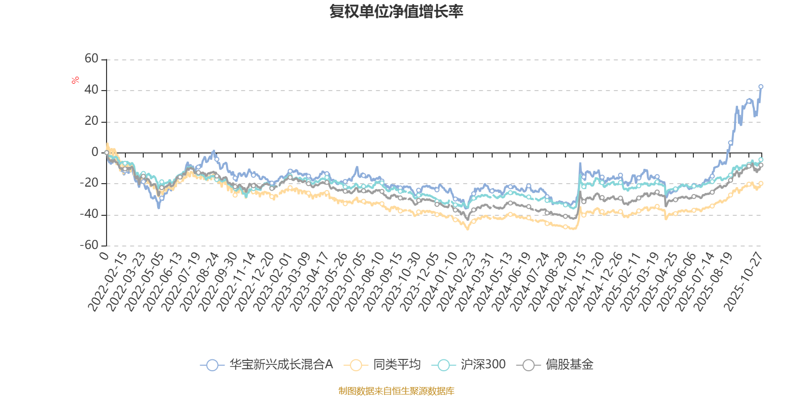 截至10月27日,华宝新兴成长混合A近三个月复权单位净值增长率为55.77%,位于同类可比基金12/621;近半年复权单位净值增长率为87.57%,位于同类可比基金15/619;近一年复权单位净值增长率为62.12%,位于同类可比基金45/611;近三年复权单位净值增长率为65.94%,位于同类可比基金32/518。