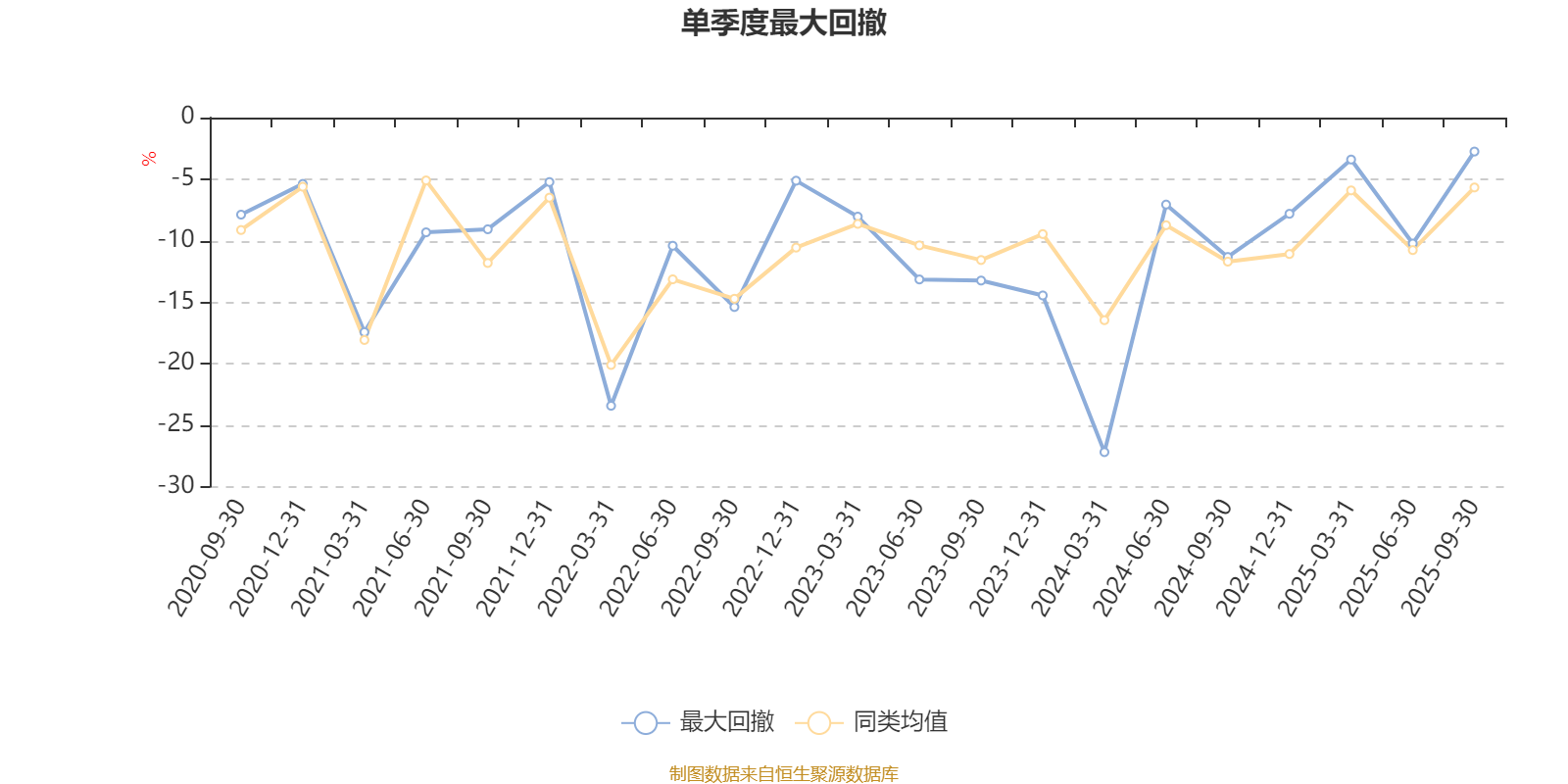 截至10月27日,基金近三年最大回撤为54.01%,同类可比基金排名499/513。单季度最大回撤出现在2024年一季度,为27.2%。