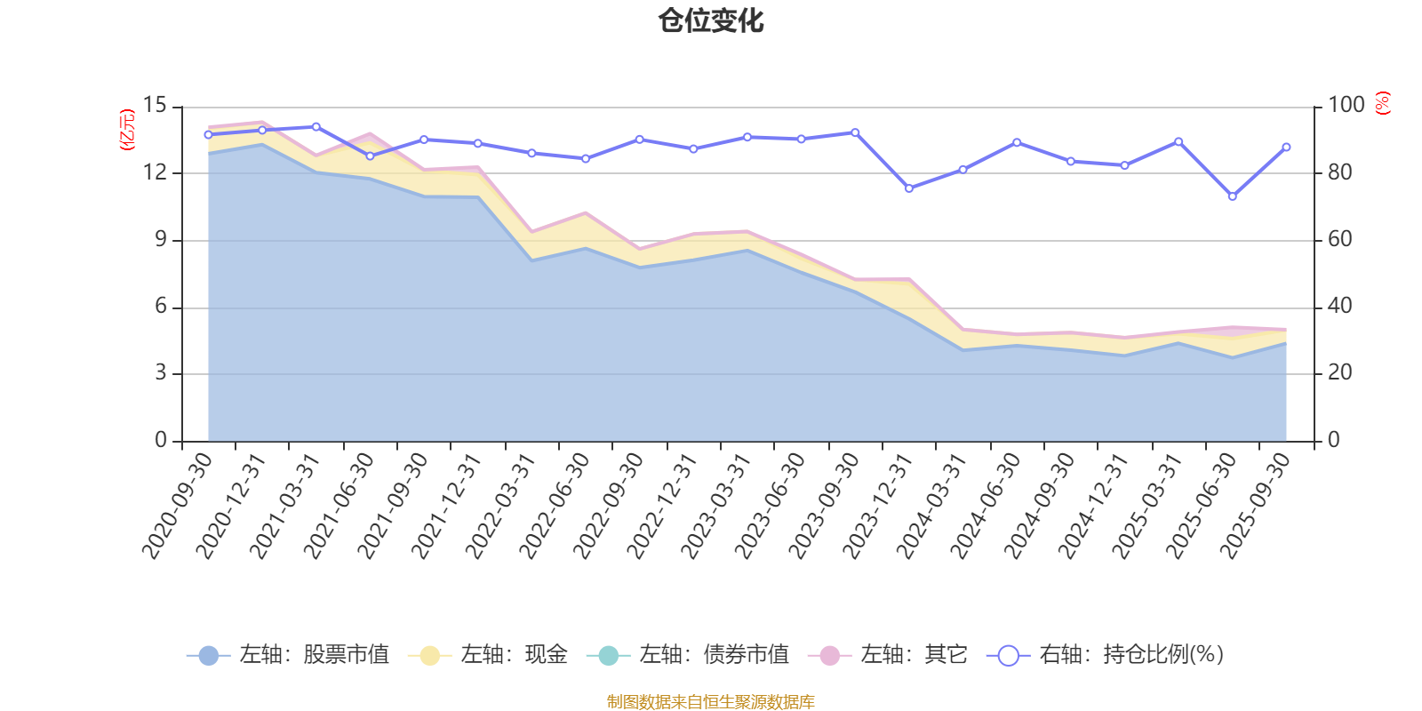 据定期报告数据统计,近三年平均股票仓位为85.31%,同类平均为85.66%。2021年一季度末基金达到93.99%的最高仓位,2025年上半年末最低,为73.19%。