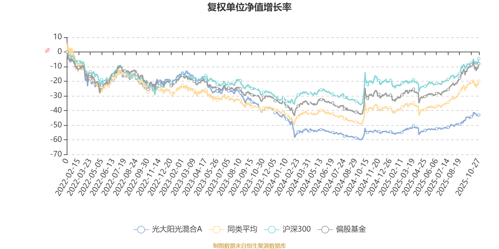 截至10月27日,光大阳光混合A近三个月复权单位净值增长率为13.53%,位于同类可比基金351/621;近半年复权单位净值增长率为22.67%,位于同类可比基金421/619;近一年复权单位净值增长率为24.55%,位于同类可比基金358/611;近三年复权单位净值增长率为-27.02%,位于同类可比基金512/518。