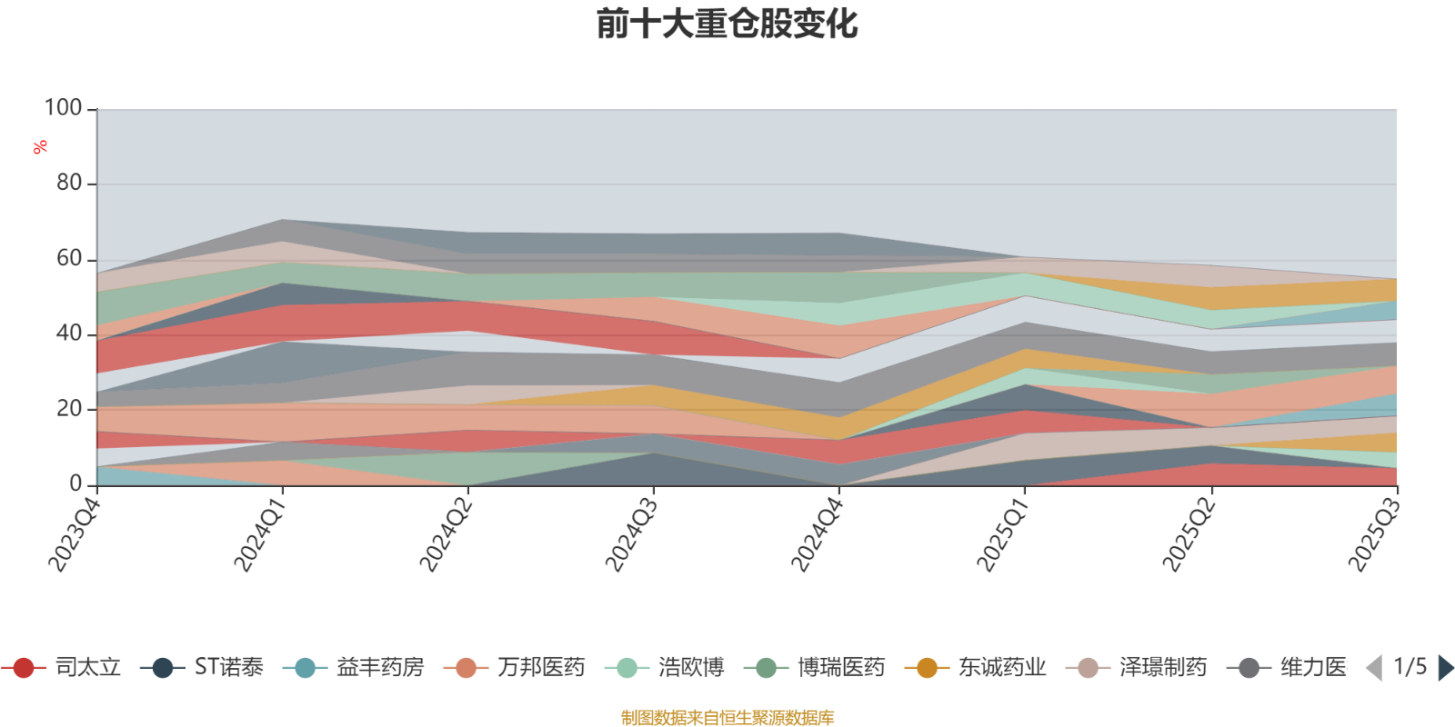 该基金持股集中度较高。截至2025年三季度末,基金十大重仓股分别是苑东生物、华海药业、恒瑞医药、京新药业、毕得医药、东诚药业、三生国健、司太立、泽璟制药、浩欧博。
