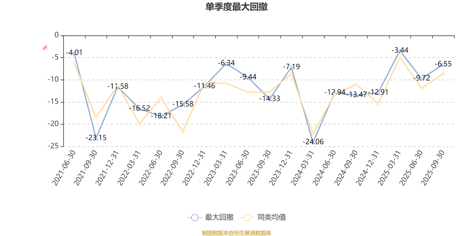 截至10月27日,基金近三年最大回撤为33.4%,同类可比基金排名11/75。单季度最大回撤出现在2024年一季度,为24.06%。