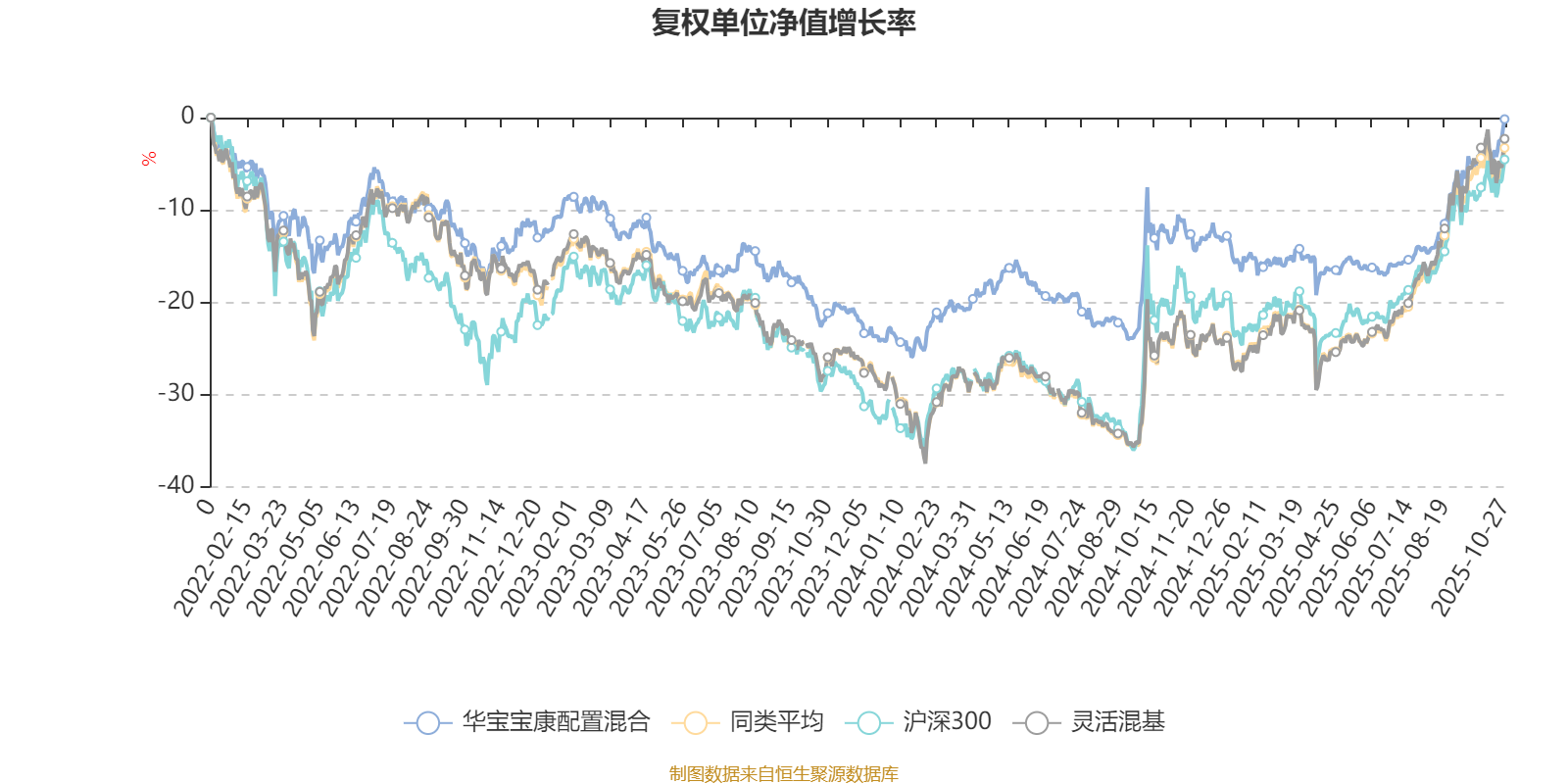 截至10月27日,华宝宝康配置混合近三个月复权单位净值增长率为16.58%,位于同类可比基金485/1287;近半年复权单位净值增长率为19.60%,位于同类可比基金770/1287;近一年复权单位净值增长率为13.86%,位于同类可比基金843/1287;近三年复权单位净值增长率为19.75%,位于同类可比基金529/1286。