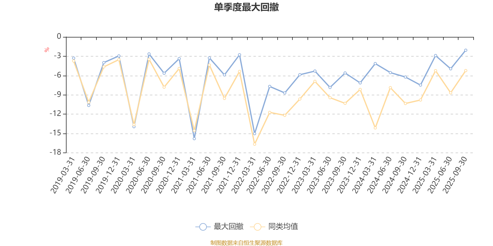 截至10月27日,基金近三年最大回撤为19.16%,同类可比基金排名259/1274。单季度最大回撤出现在2021年一季度,为15.82%。