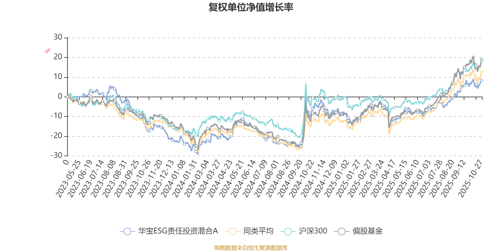 截至10月27日,华宝ESG责任投资混合A近三个月复权单位净值增长率为10.94%,位于同类可比基金435/689;近半年复权单位净值增长率为21.48%,位于同类可比基金457/688;近一年复权单位净值增长率为12.39%,位于同类可比基金547/653。