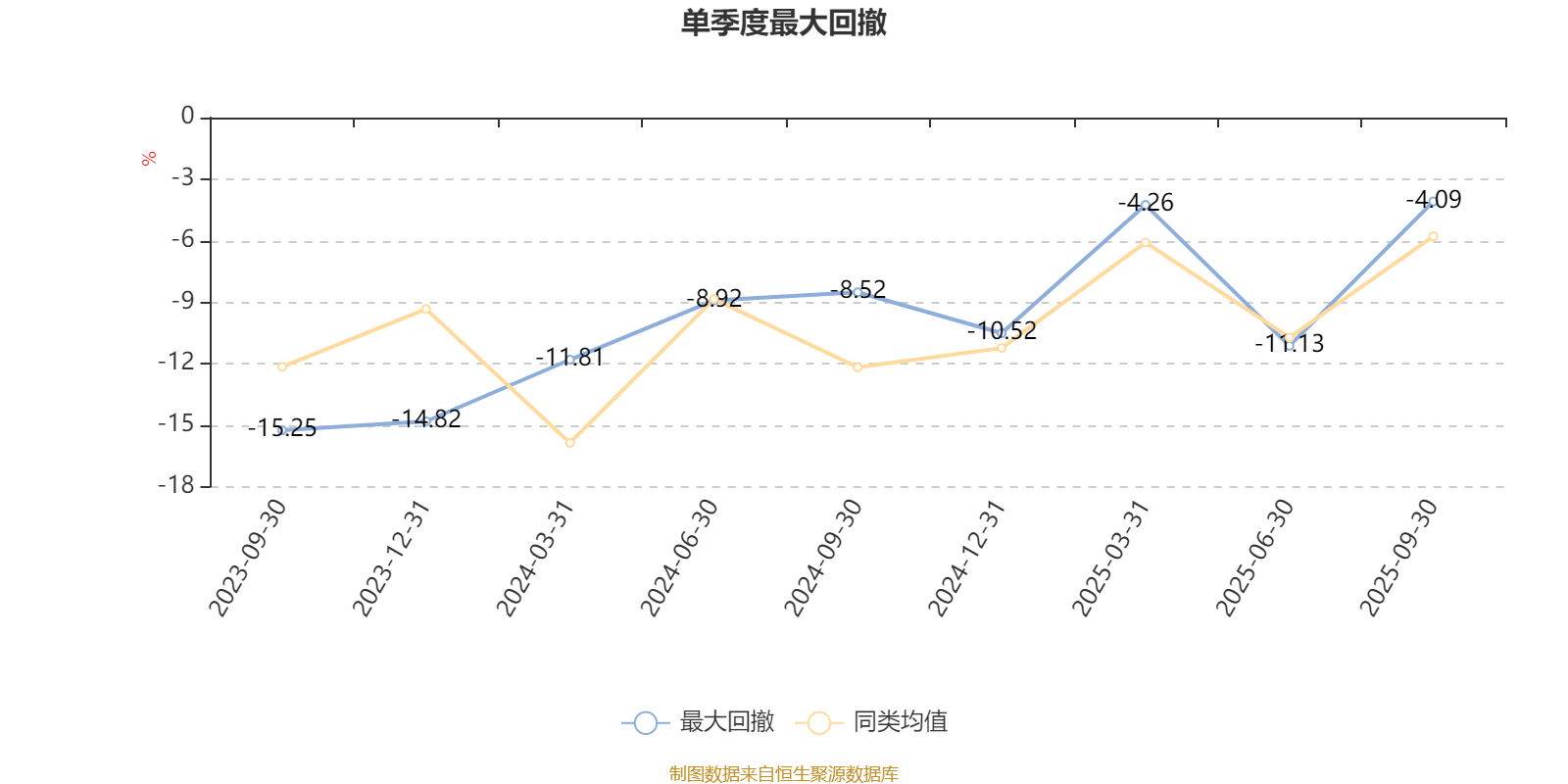 截至10月27日,基金成立以来最大回撤为33.08%。单季度最大回撤出现在2023年三季度,为15.25%。