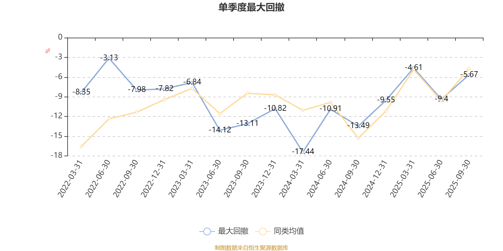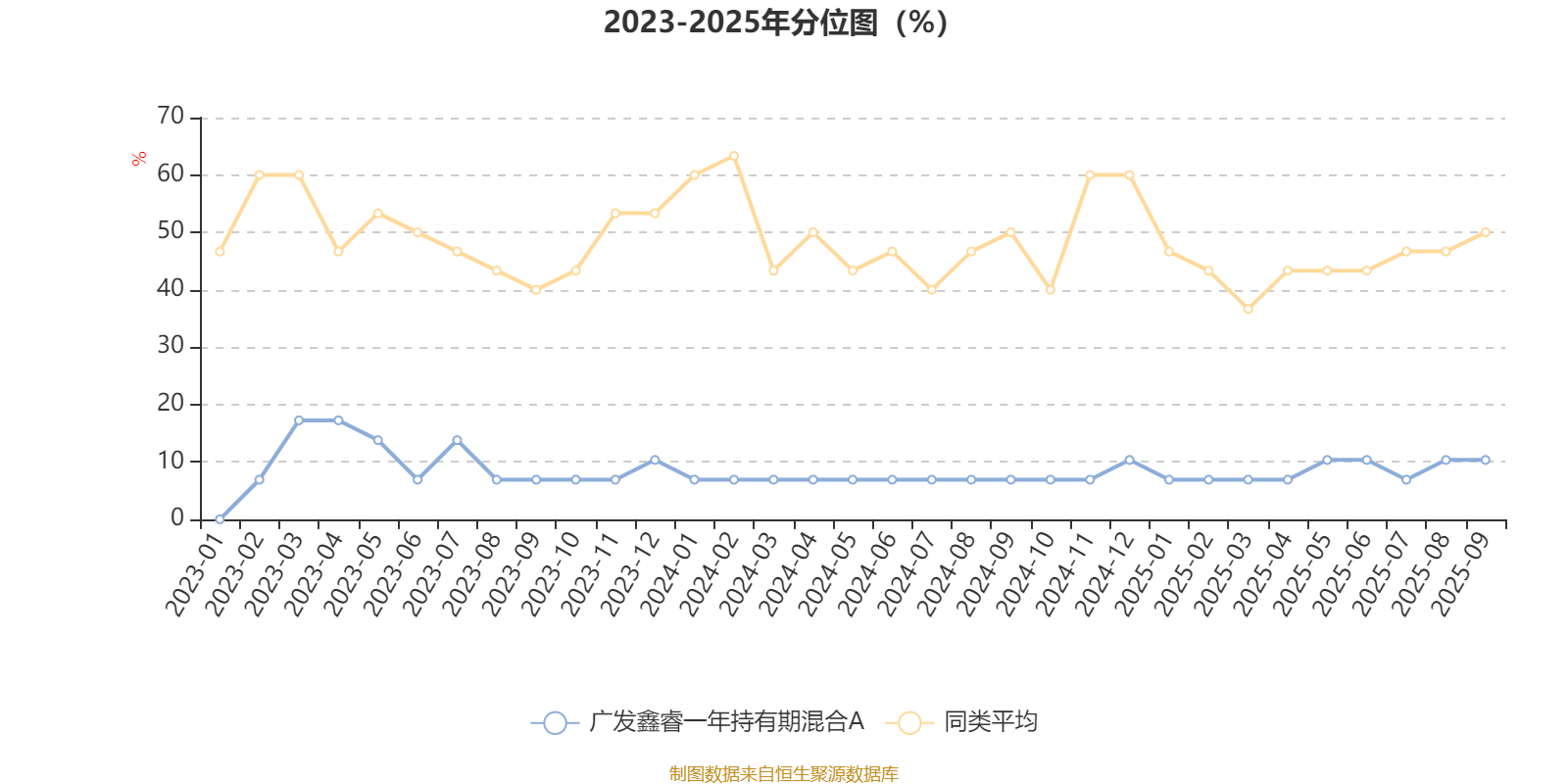 通过所选区间该基金净值增长率分位图,可以观察该基金与同类基金业绩比较情况。图为坐标原点到区间内某时点的净值增长率在同类基金中的分位数。