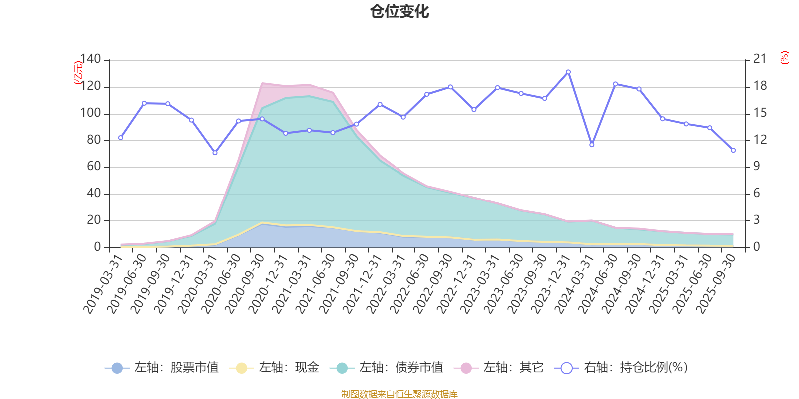 据定期报告数据统计,近三年平均股票仓位为15.58%,同类平均为72.35%。2023年末基金达到19.64%的最高仓位,2020年一季度末最低,为10.62%。