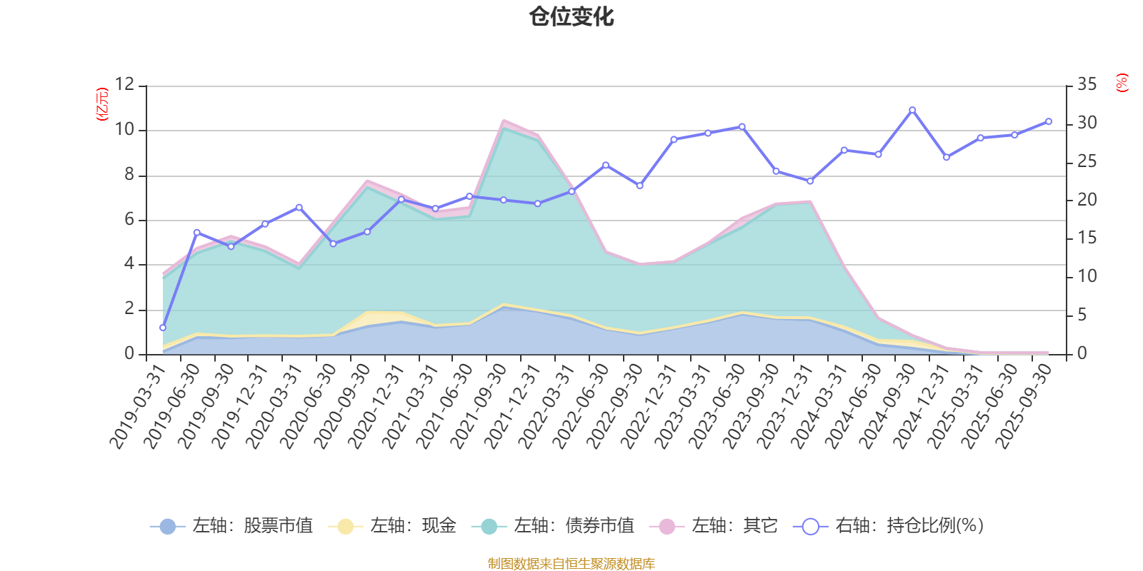 据定期报告数据统计,近三年平均股票仓位为27.52%,同类平均为72.35%。2024年三季度末基金达到31.83%的最高仓位,2019年一季度末最低,为3.48%。