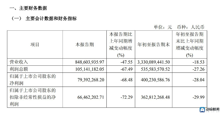 老白干酒2025年第三季度主要财务数据