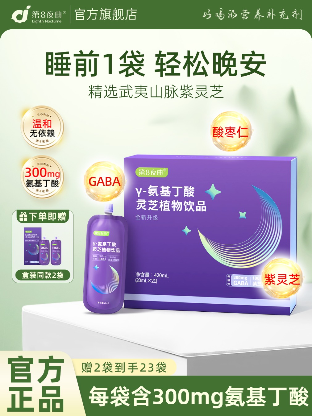 第8夜曲官方旗舰店γ-氨基丁酸灵芝植物饮品产品宣传图。电商平台截图
