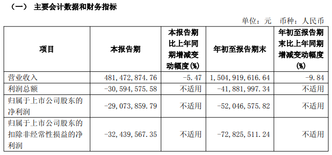 值得注意的是,在前三季度净利润亏损激增超3倍的同时,单季亏损却出现收窄迹象。第三季度,公司营业收入4.81亿元,同比下降5.5%;归母净利润自去年同期亏损3446万元变为亏损2907万元,亏损额有所减少;扣非归母净利润自去年同期亏损4050万元变为亏损3244万元,亏损额有所减少。