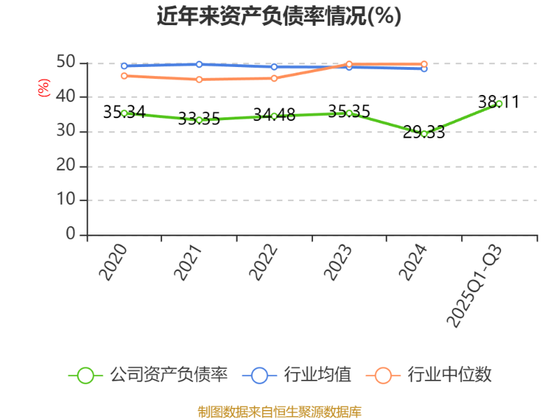 负债重大变化方面,截至2025年三季度末,公司其他应付款(含利息和股利)较上年末增加2349.21%,占公司总资产比重上升10.72个百分点;递延所得税负债较上年末增加519.04%,占公司总资产比重上升4.38个百分点;一年内到期的非流动负债较上年末减少11.35%,占公司总资产比重下降2.37个百分点;短期借款较上年末增加374.7%,占公司总资产比重上升1.94个百分点。