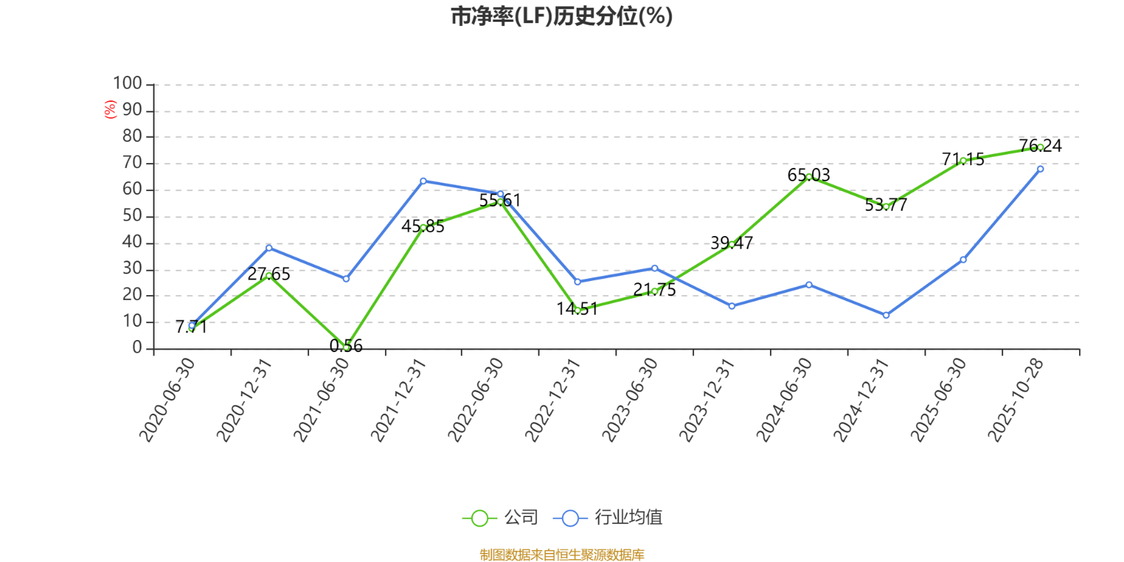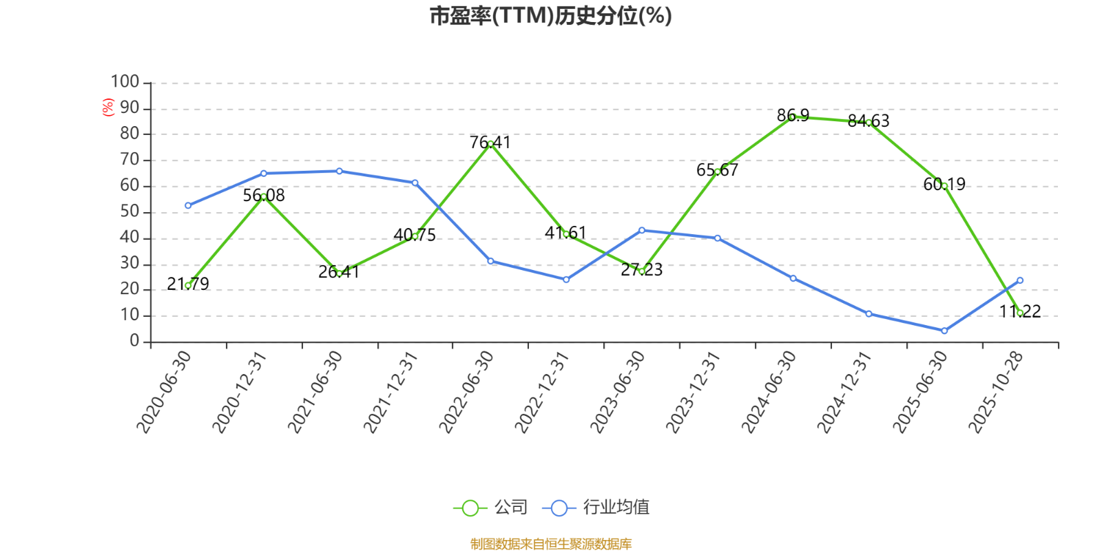 市盈率、市净率为负时,不显示当期分位数,会导致折线图中断。