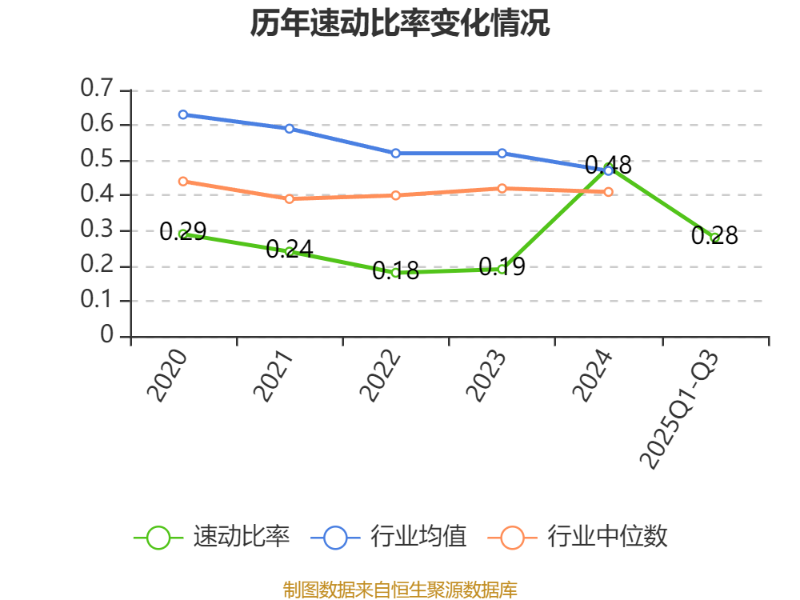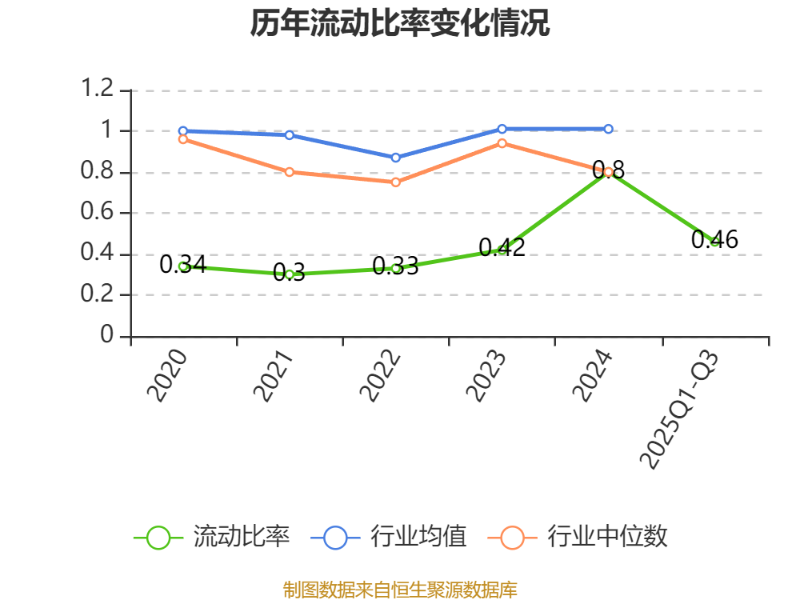2025年前三季度,公司流动比率为0.46,速动比率为0.28。
