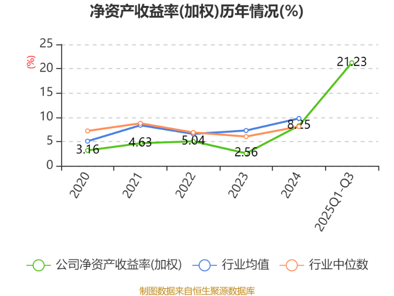 盈利能力方面, 2025年前三季度公司加权平均净资产收益率为21.23%,同比上升16.08个百分点。公司2025年前三季度投入资本回报率为15.34%,较上年同期上升9.85个百分点。