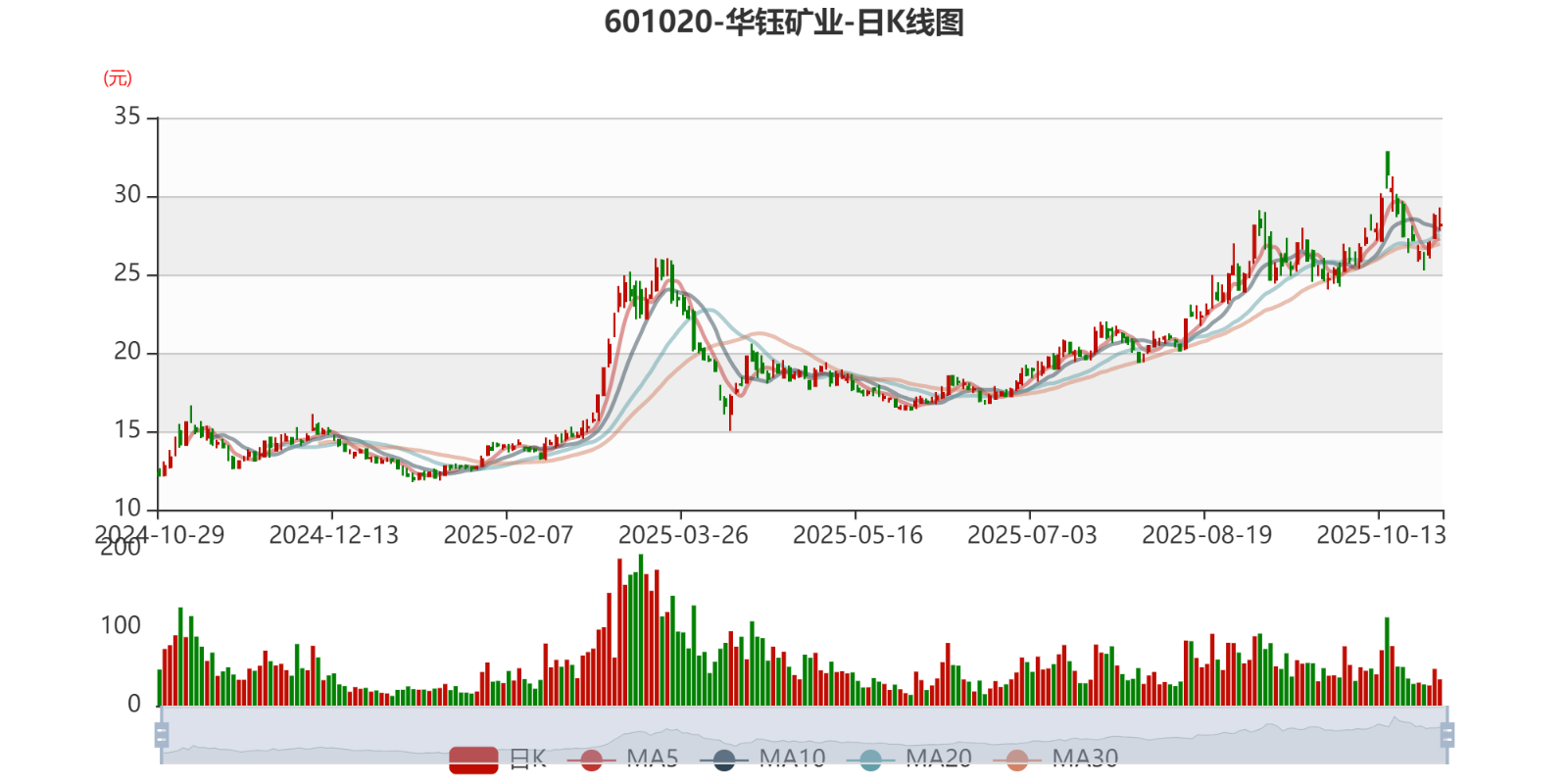 以10月28日收盘价计算,华钰矿业目前市盈率(TTM)约为25.62倍,市净率(LF)约5.4倍,市销率(TTM)约10.76倍。