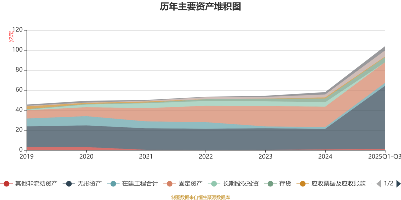 资产重大变化方面,截至2025年三季度末,公司无形资产较上年末增加207.38%,占公司总资产比重上升25.39个百分点;固定资产较上年末增加0.77%,占公司总资产比重下降15.45个百分点;长期股权投资较上年末减少100%,占公司总资产比重下降7.72个百分点;商誉占公司总资产的1.94%,上年末为0。