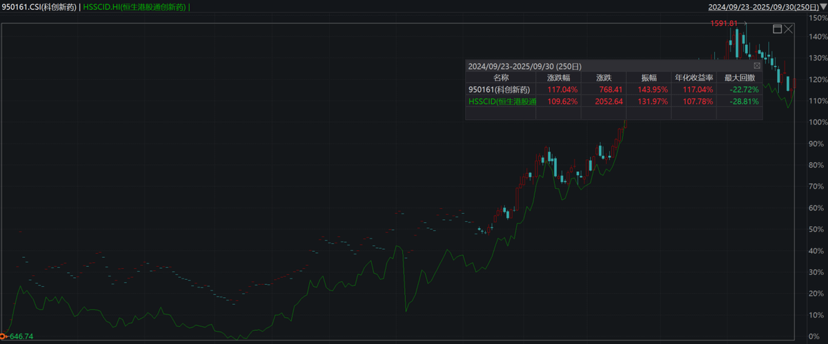 关注20cm标的科创创新药 ETF(589720),跟踪指数“924行情”以来跑赢恒生港股通创新药指数