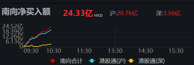 上证报中国证券网讯 10月31日10时26分,南向资金净买入超20亿港元。