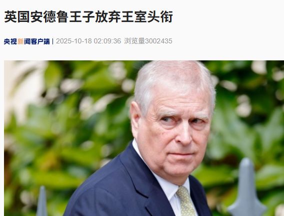 65岁的安德鲁是已故英国女王伊丽莎白二世的次子。10月17日,安德鲁曾通过白金汉宫发表声明,同意放弃其约克公爵这一由其母亲授予的头衔及其他荣誉,但仍保留王子身份,他的两个女儿也仍保留公主身份。