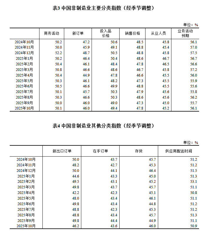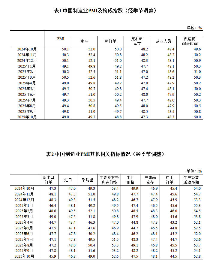 中新网10月31日电据国家统计局网站消息,国家统计局10月31日发布2025年10月中国采购经理指数运行情况。