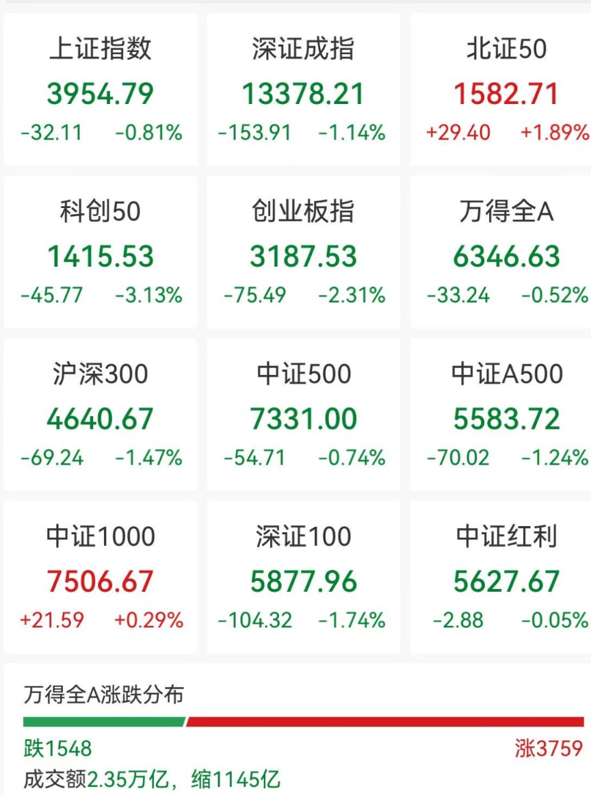10月31日,A股市场震荡调整,截至收盘,沪指跌0.81%,深成指跌1.14%,创业板指跌2.31%。市场成交额2.35万亿,全市场超3700股上涨。