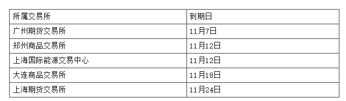 根据上海国际能源交易中心相关规定,除原油(SC)、低硫燃料油(LU)外其他品种允许自然人持仓进入交割月,11月10日为国际铜(BC)2511、20号胶(NR)2511合约自然人最后交易日,11月18日为原油(SC)2512合约自然人最后交易日,11月21日为低硫燃料油(LU)2512合约自然人最后交易日。