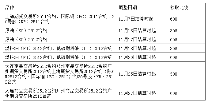 如实际调整日期或收取比例与上述不符,请以官网最新公告为准。各品种限仓细则请参见各交易所相关管理办法,或致电400-980-1818详询。