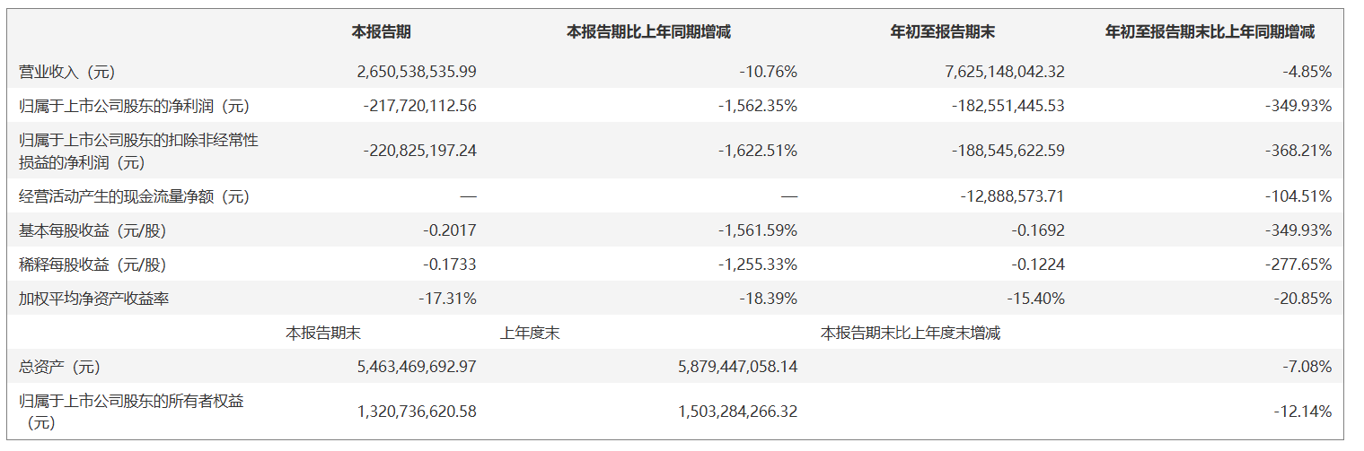2025年前三季度,公司毛利率为3.01%,同比下降1.83个百分点;净利率为-2.82%,较上年同期下降3.79个百分点。从单季度指标来看,2025年第三季度公司毛利率为-1.63%,同比下降6.23个百分点,环比下降7.72个百分点;净利率为-9.26%,较上年同期下降9.76个百分点,较上一季度下降10.28个百分点。