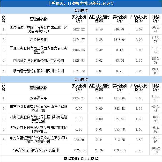 深股通现身龙虎榜,福石控股涨停(10-31)