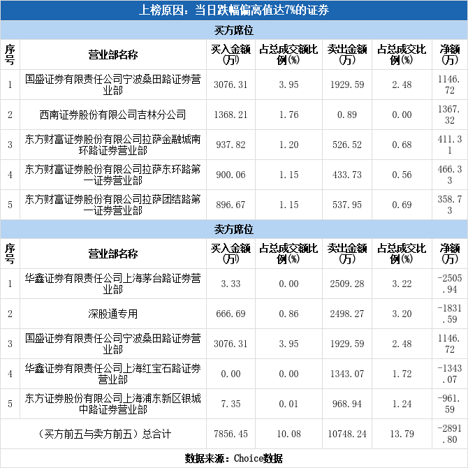 深股通现身龙虎榜,美邦服饰跌停(10-31)