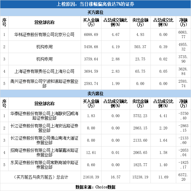 龙虎榜数据显示,今日共2个机构席位出现在龙虎榜单上,分别位列买二、买三。合计净买入8691.21万元,占龙虎榜净买额的136.39%。