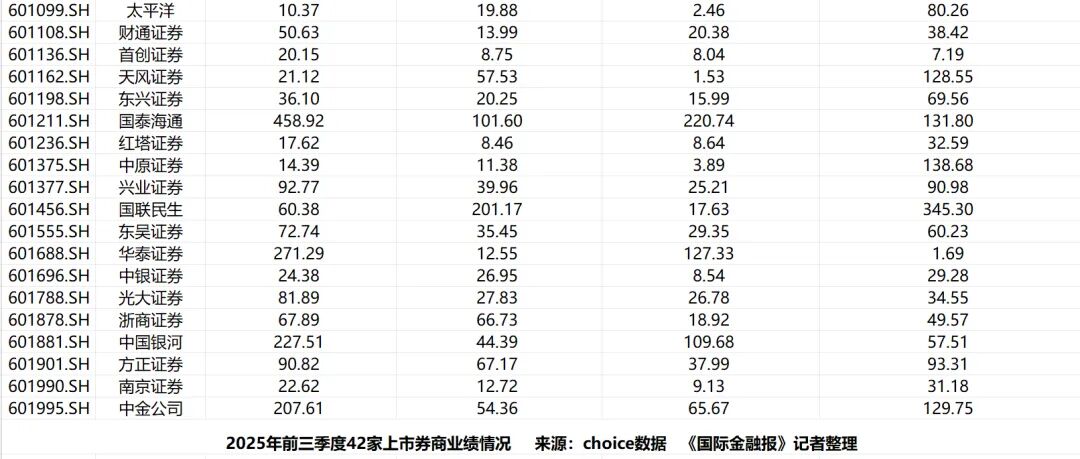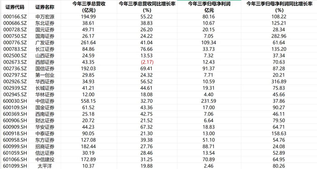 此外,华泰证券、广发证券、中国银河和中金公司等券商的业绩也实现了增长,前三季度总营收均突破200亿元。