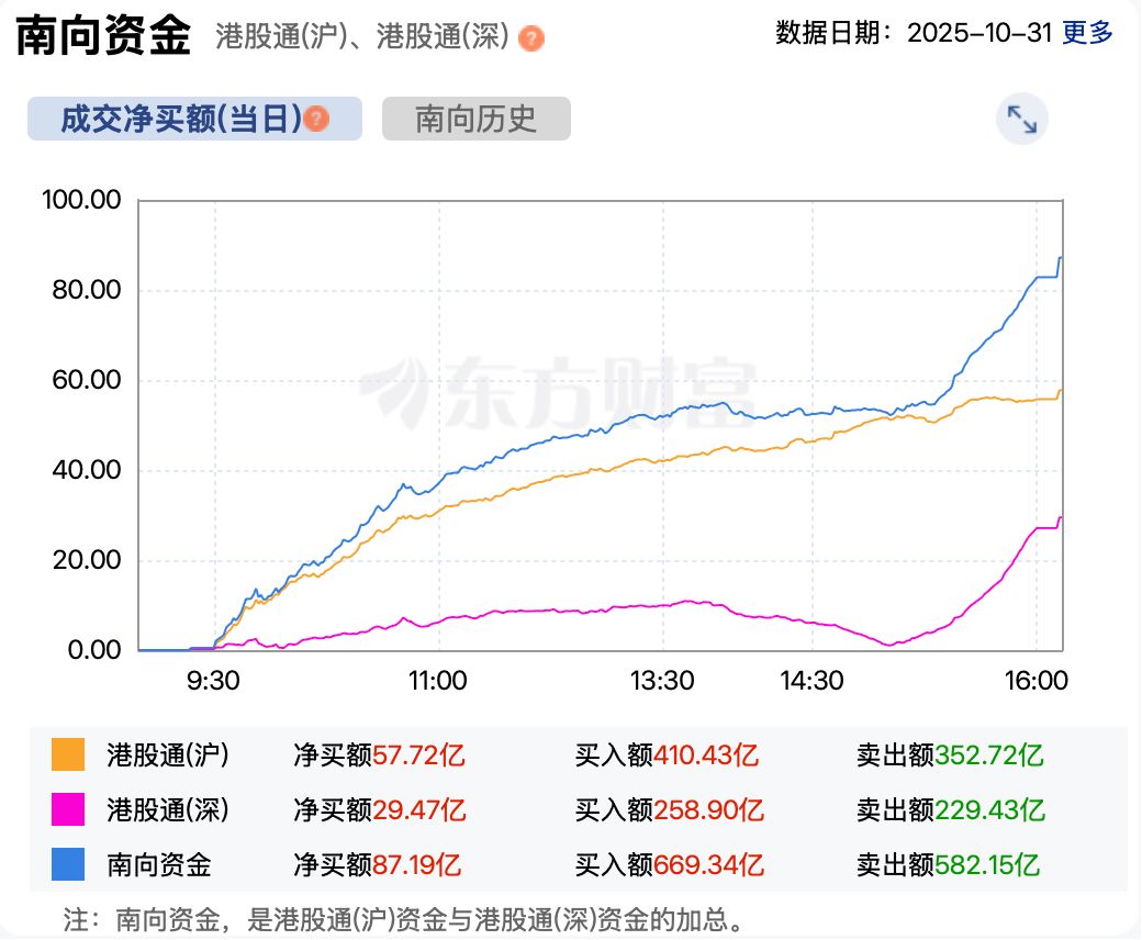 资金方面,截至收盘,南向资金净买入港股金额超87亿港元。