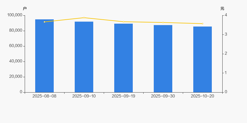 2025年8月8日至今,公司股东户数有所下降,区间跌幅为9.85%。2025年8月8日至2025年10月20日区间股价下降2.46%。