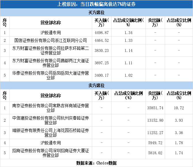 沪股通现身龙虎榜,中国核建跌停(10-31)