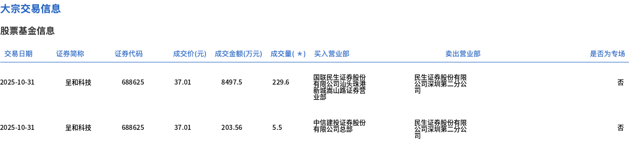 呈和科技今日大宗交易折价成交235.1万股,成交额8701.06万元