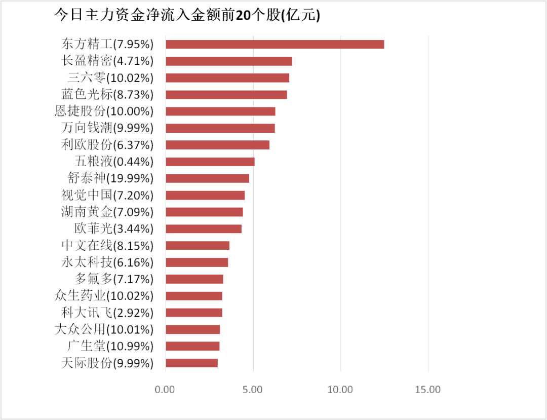 4.东方精工主力资金净流入12.45亿元居首