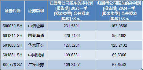 今年前三季度,国泰海通、中国银河、广发证券进入“百亿净利俱乐部”,去年同期则仅有中信证券和华泰证券2家。