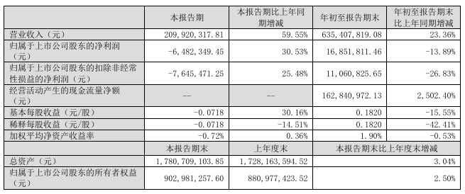 业绩方面,泰福泵业第三季度实现营业收入2.1亿元,同比增长59.55%;归属于上市公司股东的净利润为亏损648.23万元。