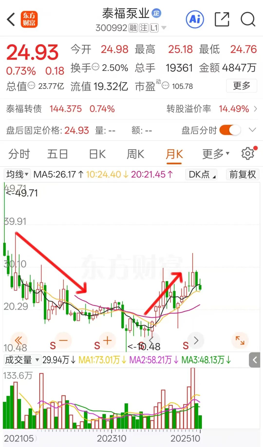 此情况下,泰福泵业股价表现也较为一般,截至去年“9·24”行情开始前,公司股票可以说一上市就持续下跌,如今虽然有所反弹,但距高点依然是腰斩状态。截至10月31日收盘,公司最新市值为23.77亿元。