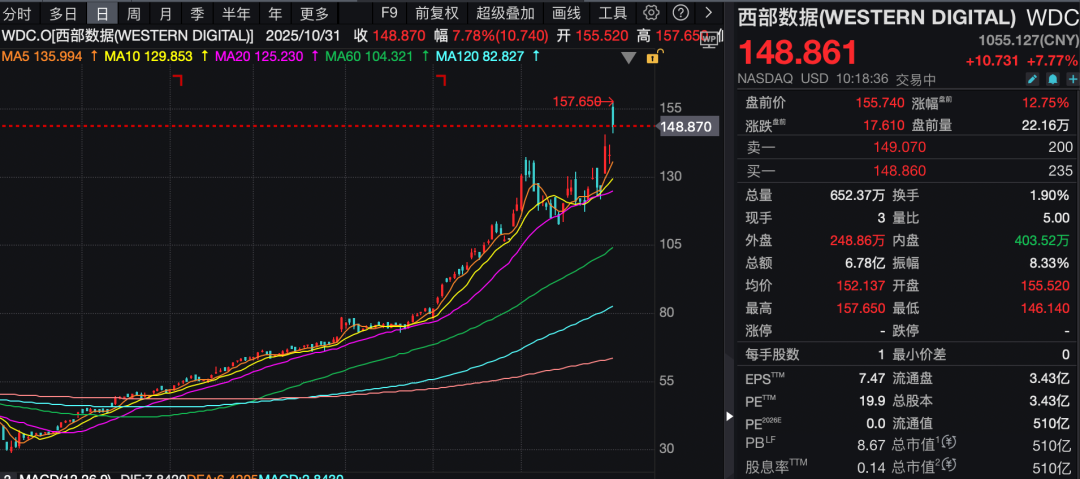 西部数据的管理层将强劲业绩归功于蓬勃发展的人工智能和云数据需求。西部数据称,计划提高硬盘价格以应对“旺盛的需求”,并开设了一个专注于人工智能的测试实验室以服务企业客户。摩根大通将西部数据的目标价从94美元上调至175美元。