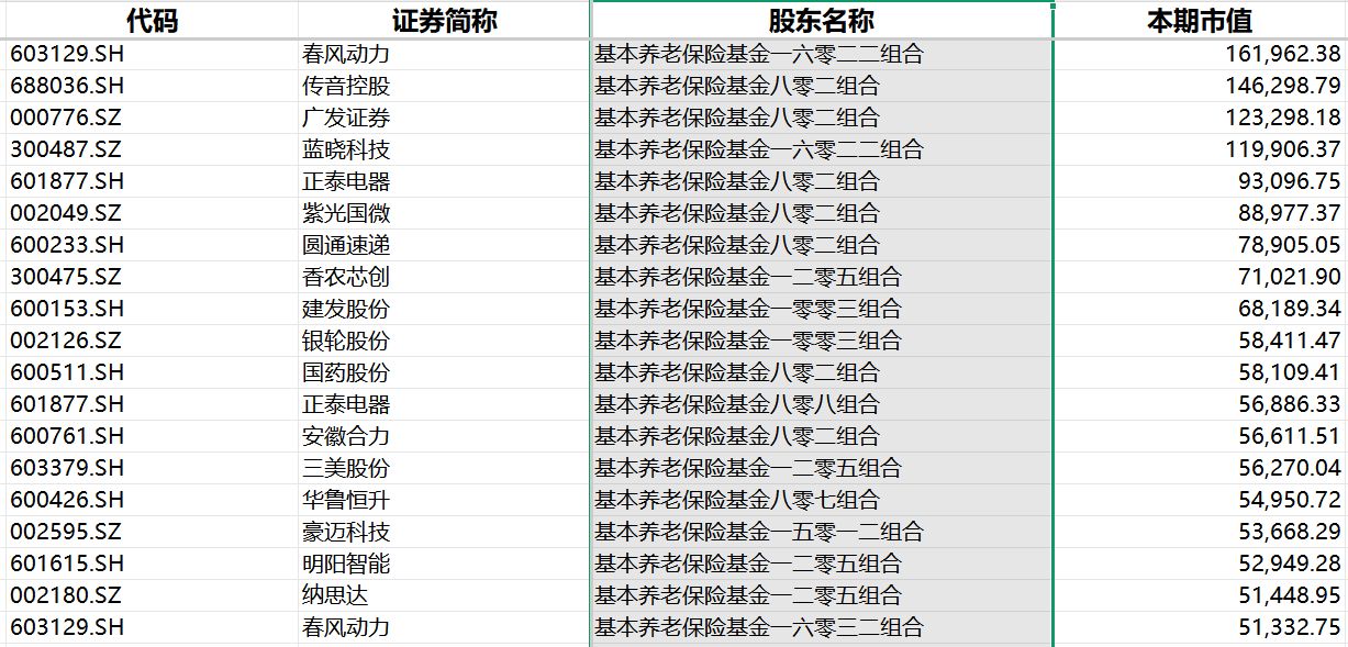 从本期市值维度看,养老基金持股市值最高的个股是春风动力,养老金一六零二二组合、一六零三二组合分别持有603.77万股、191.36万股,持股市值达16.2亿元、5.13亿元;春风动力也是单只养老基金持股市值最高的品种。