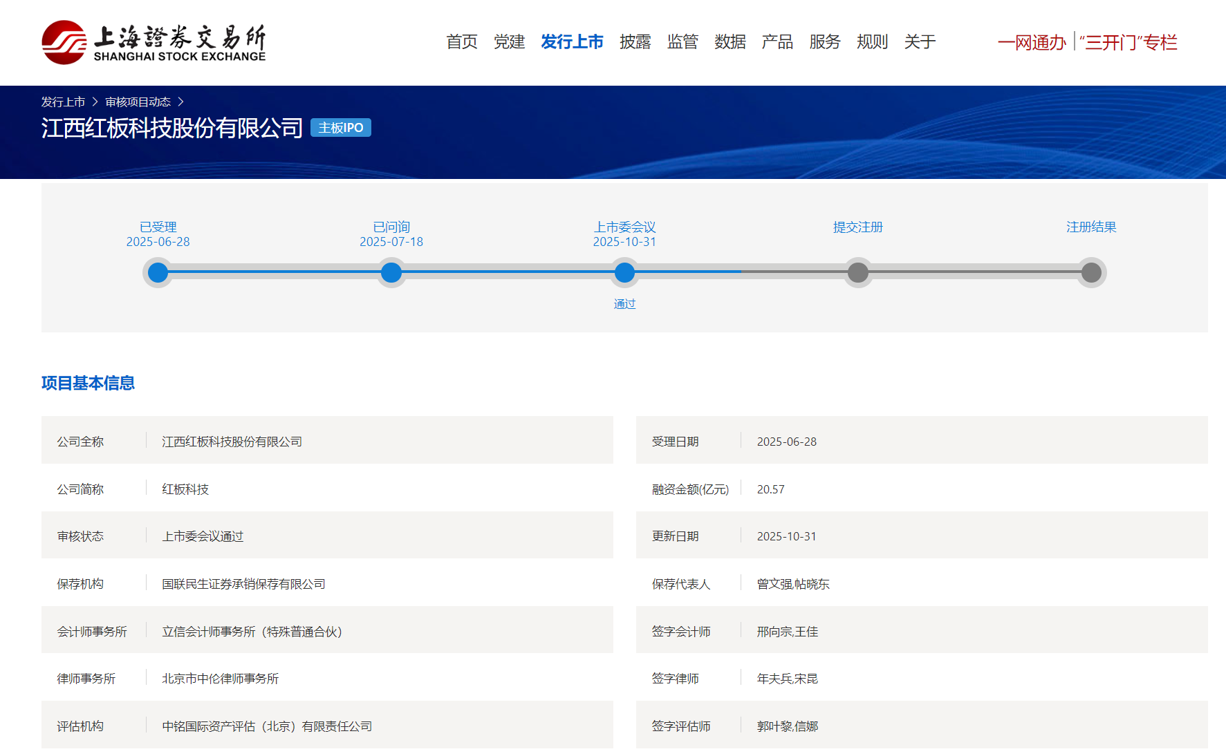 从2025年6月28日获受理,到10月31日上会面审,红板科技仅耗时四个月就成功过会。