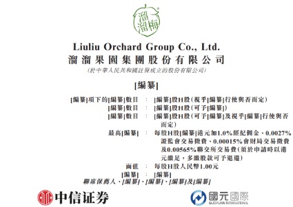 港交所10月28日披露,西梅零食龙头“溜溜果园集团股份有限公司”向港交所主板提交上市申请书,中信证券、国元国际为联席保荐人。