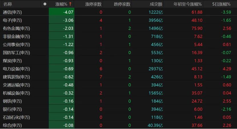半导体、通信设备、英伟达概念、CPO、PCB、电子元件、基本金属、稀有金属、电子设备制造、计算机硬件等科技板块重挫。但肝炎概念、重组蛋白、生物医药、化学制药等领涨。