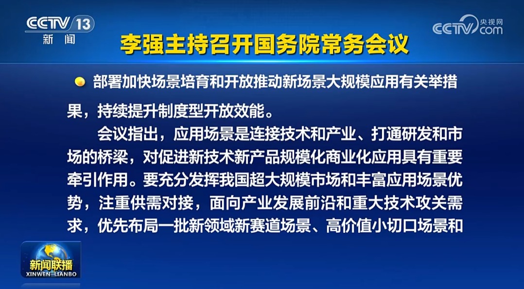 国常会:部署加快场景培育和开放推动新场景大规模应用有关举措