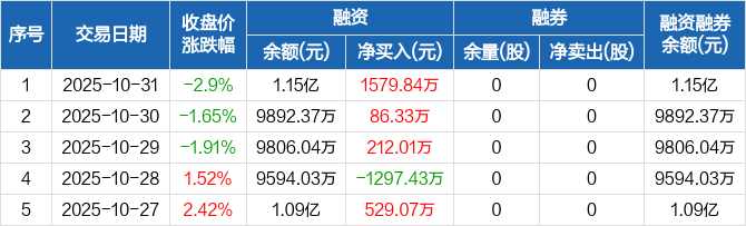 超卓航科:融资余额1.15亿元,创历史新高(10-31)